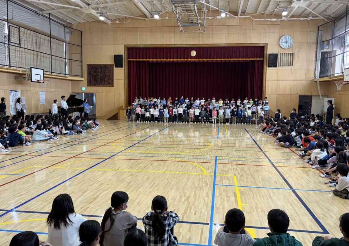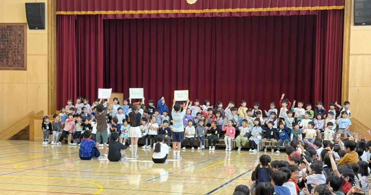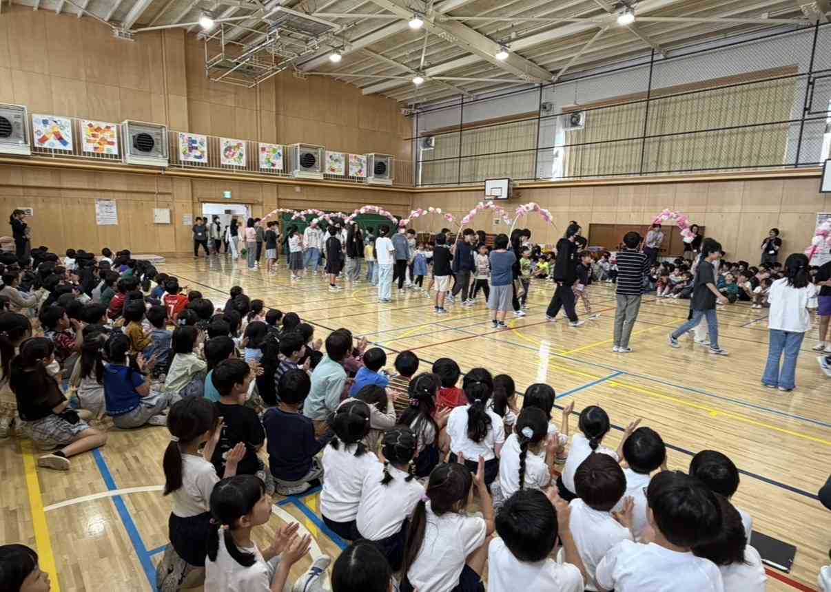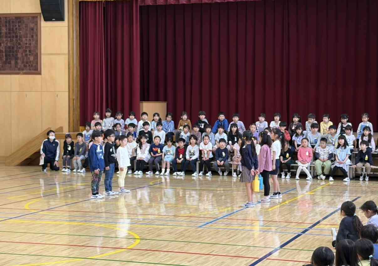 今日の1時間目に、1年生を迎える会が行われました。6年生と手をつないで入場し、計画委員が準備してくれたクイズなどで楽しみました。2年生から6年生までの在校生からは朝顔の種や飾りなどのプレゼントをもらい、1年生からは元気で可愛い呼びかけがありました。